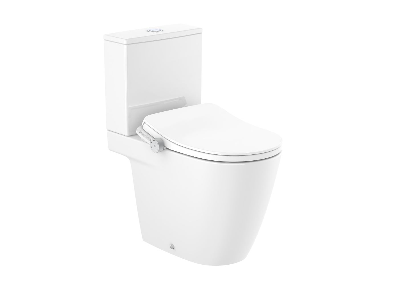 In-Wash® - Έξυπνη λεκάνη επιδαπέδια Rimless με επιλογή οριζόντιας ή κάθετης αποχέτευσης και θερμαινόμενο κάθισμα. Επίστρωση Supraglaze®. Απαιτείται παροχή ρεύματος